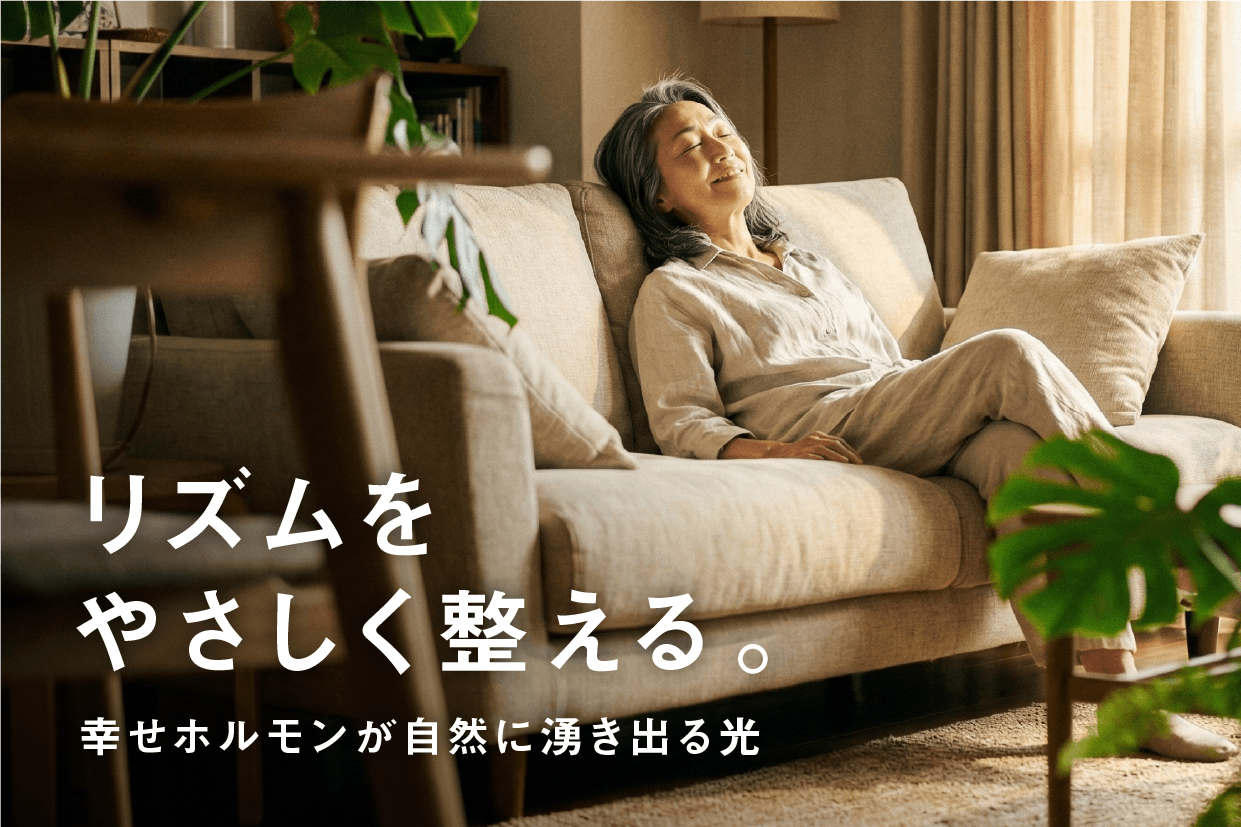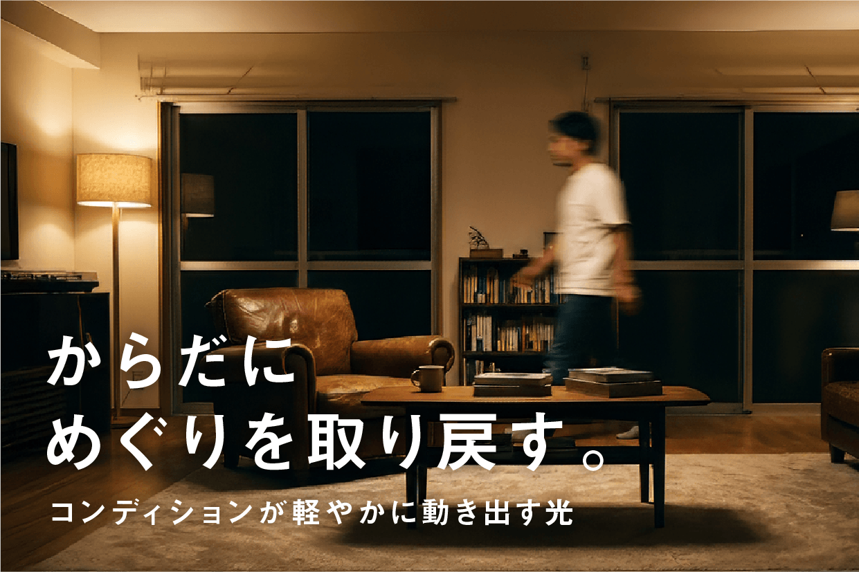 (株)グリーンユーティリティーの「明王」は、 光を通じて心身の負担を和らげ 日常に安心を取り戻すことを目指しています。 太陽光に近い自然な光と、過度な刺激を抑えた設計により 現代の暮らしに寄り添う光のあり方を提案します。
